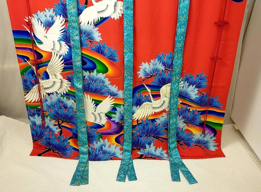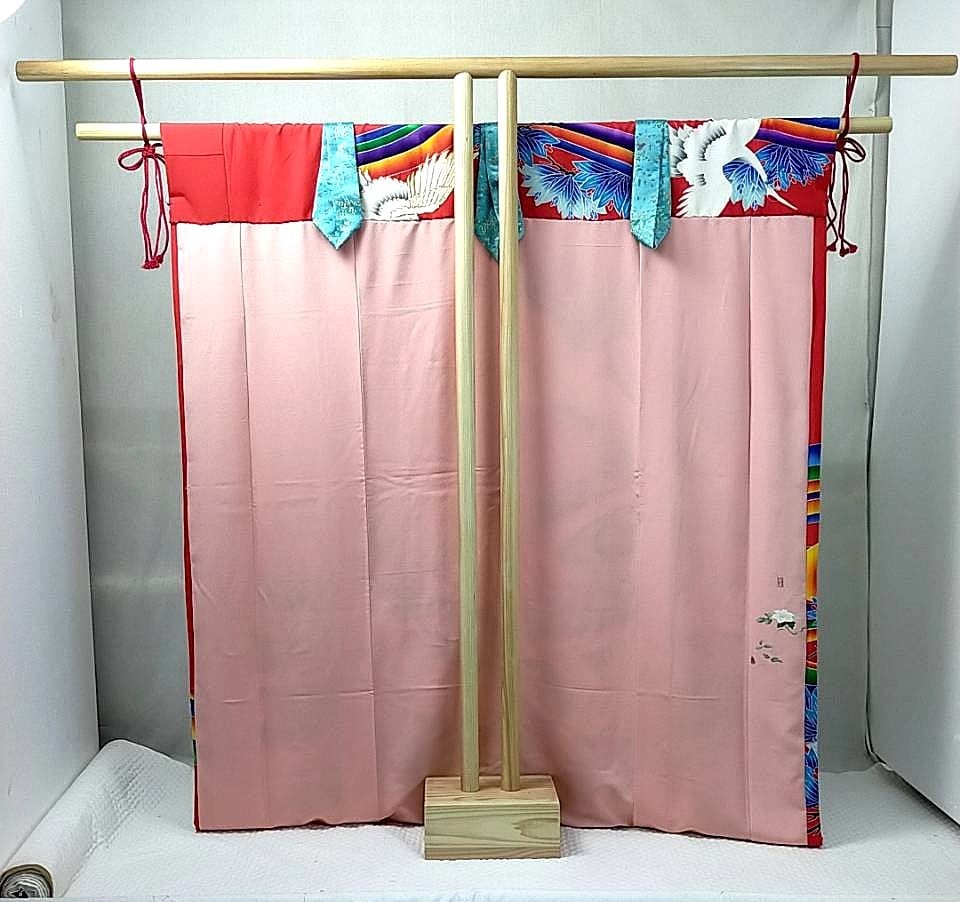 現品限り【着物リメイク】几帳『紅い虹と鶴』 平安時代文化の衝立(ついたて)を現代風にアレンジした几帳